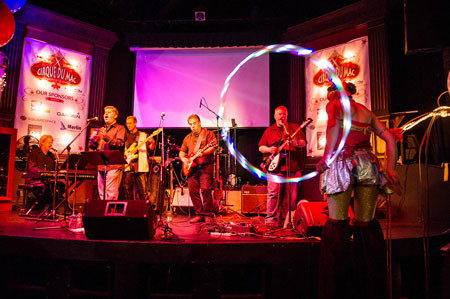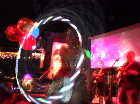 For those keeping score at home, the band is comprised of Chris Breen, Chuck La Tournous, Paul Kent, Dave Hamilton, Duane Straub, Bob LeVitus, and yours truly. Most of those other guys are all but pro musicians, so we’re able to get away with it. Plus, we’ve played 15 or so parties (counting the pre-Cirque events) over the years, so with 30 or so times to play together, we’re getting the hang of it.